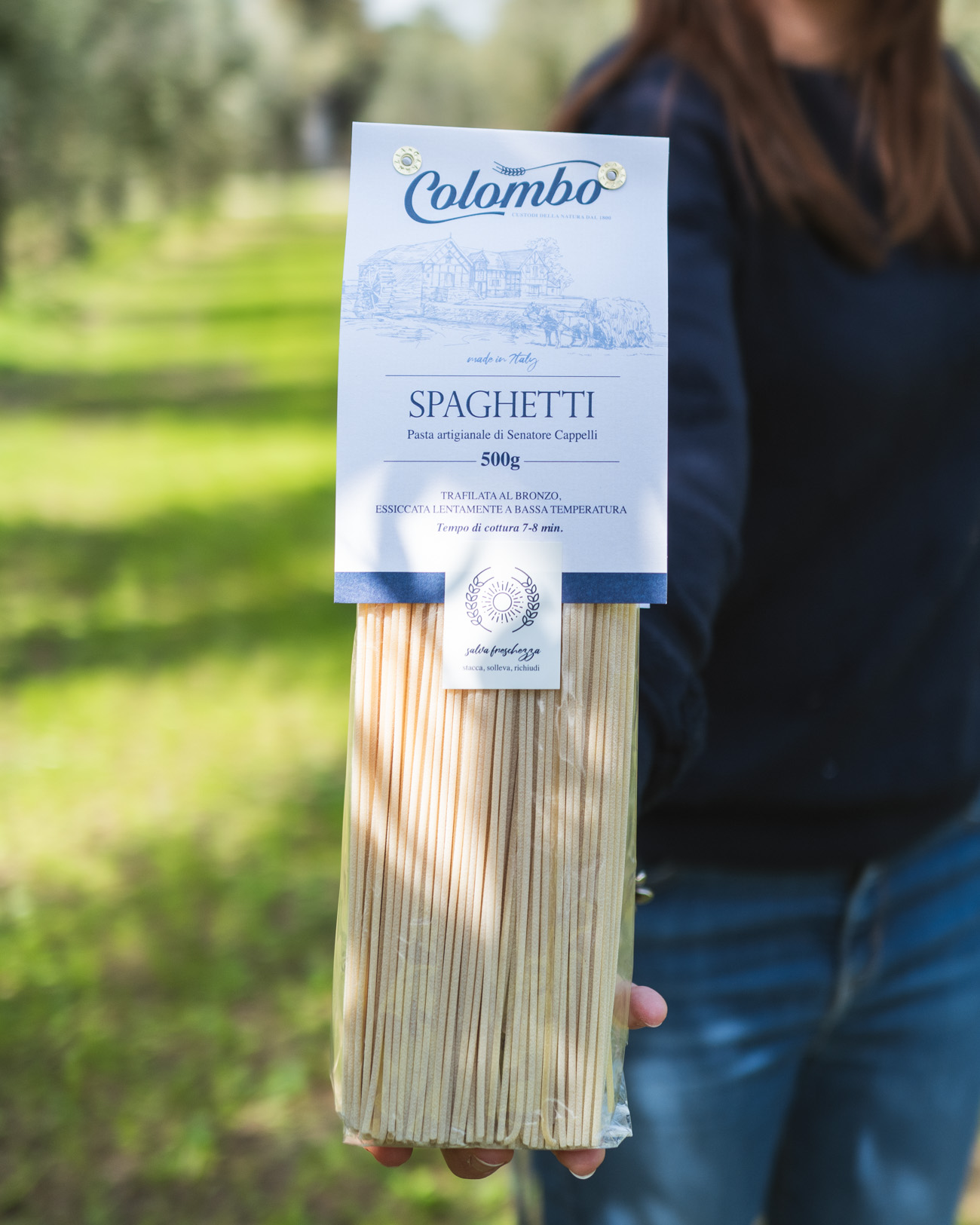Pasta artigianale di Senatore Cappelli, trafilata al bronzo, essiccata lentamente a bassa temperatura. La trafilatura al bronzo dona loro ruvidità, favorendo l’assorbimento dei condimenti.